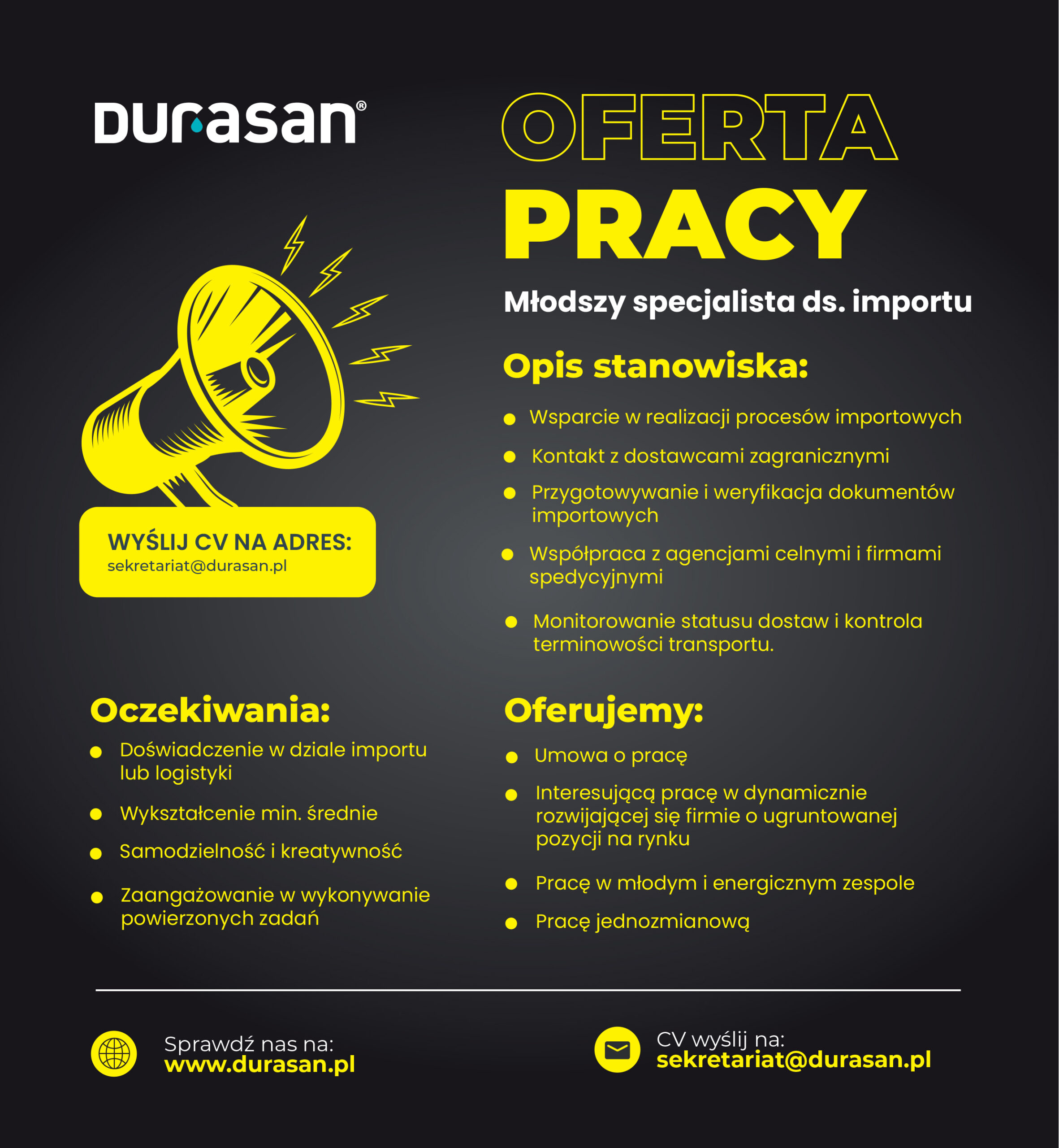 • Doświadczenie w dziale importu lub logistyki